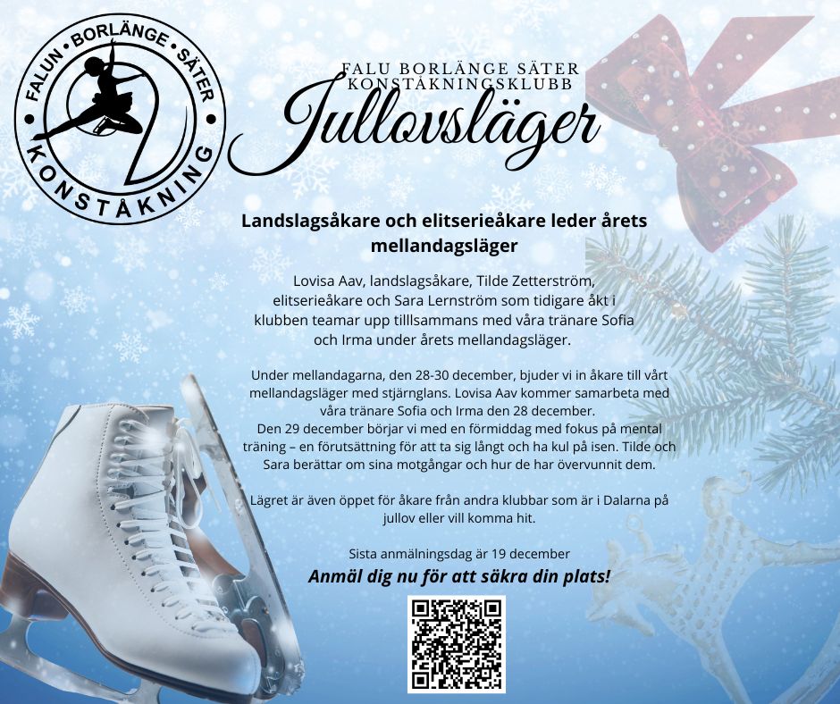 Välkommen med din anmälan till läger på jullovet - tisdag 2 januari till torsdag 4 januari i Borlänge ishall.